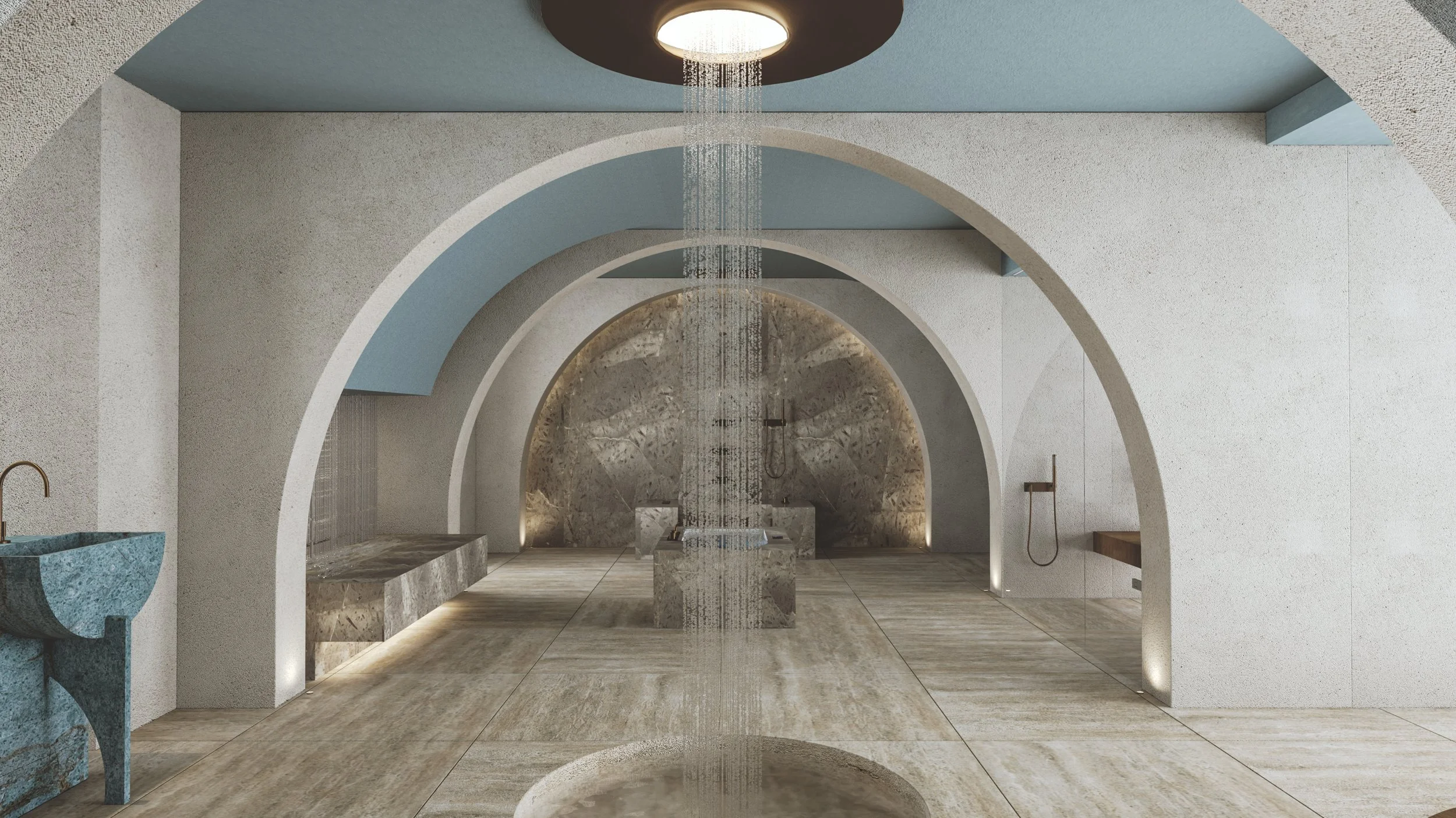 In a exploration of the role of the arc through the architectural history of public baths, the project uses the arcs to divide the different bath zones and create a spatial experience that is both spirited and atmospheric, characteristics of the ancient baths.